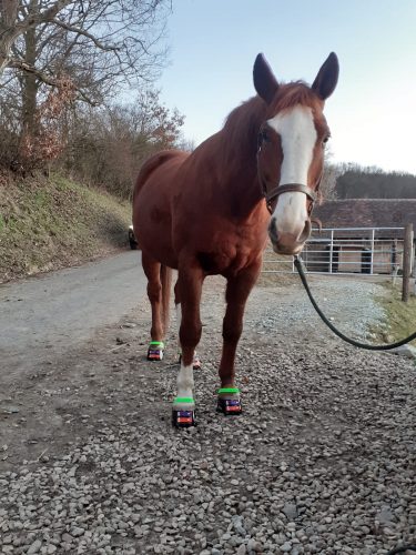 Ich bin sehr zu Frieden mit dem Produkt und mein Pferd bewegt sich wie ausgewechselt seit er die Hufschuhe täglich trägt.
